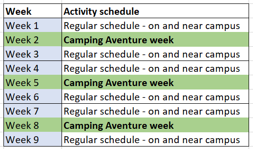 - Day 5: Tubing, then head back to BDS by 3pm